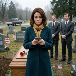 Charles stood closest to the casket with his shoulders squared and his jaw set, a grief-mask arranged the way he arranged everything now, tidy and presentable. He wore a dark suit that looked expensive, the kind with a cut that said city, not town. His eyes flicked once to his watch, then away, as if he caught himself and decided he’d better look like a son again. Henry stood beside him, hands folded too neatly, as if he didn’t know where to put them. His eyes were red, but his expression felt more nervous than sorrowful, like a man waiting for an outcome he’d already bet on. Jasmine, Charles’s wife, hovered at his elbow in a black coat with a perfect collar, veil pinned just so. She kept her phone hidden under her scarf, but I saw her glance down once, thumb moving.